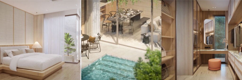 Through this segmented layout, the homeowners will be able to carry out their day without having to disturb their guests, whilst the visitors will be able to spend their time without having to intrude into the owner’s private spaces. Unlike typical pool villas, which often compel all members to gather in a single shared space, this design offers greater flexibility and privacy for everyone.